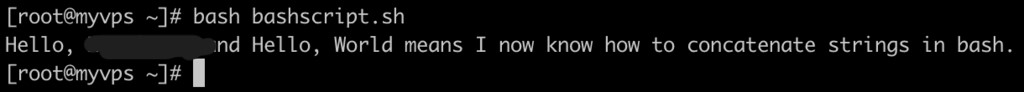 Bash permet à ses utilisateurs de concaténer une ou plusieurs variables qui ne sont pas de type chaîne. Pour cette raison, il est possible de concaténer plusieurs variables, qui peuvent être des chaînes ou des nombres :
