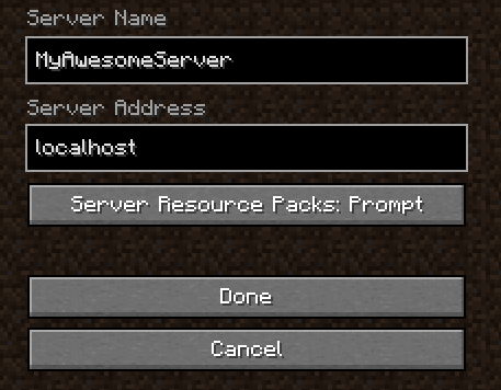 - Si vous souhaitez vérifier si les mods fonctionnent sur votre serveur, sélectionnez "Multijoueur" et ajoutez son adresse. Dans cet exemple, nous exécutons à la fois la version cliente et serveur du jeu sur la même machine, donc l'adresse du serveur sera "localhost".