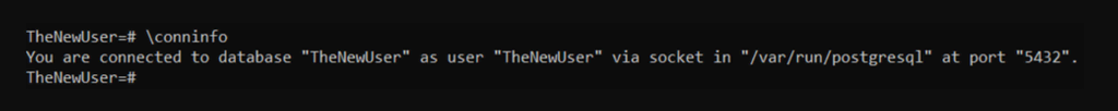 Important! PostgreSQL uses Linux information for authentication. In the previous example, you need a user called TheNewUser.